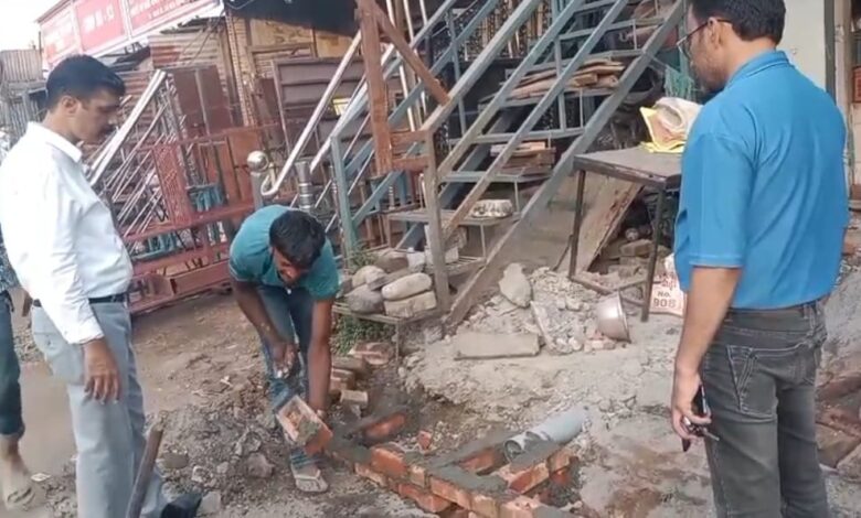 कुरैशी मटन शॉप: दुकानदार ने मीट की दुकान से निकलने वाली गंदगी को सीधे नाली में डालने के लिए नाली को घेरकर अतिक्रमण कर लिया था। लोनिवि की टीम ने मौके पर पहुंचकर इस ढांचे को तोड़ दिया और गंदगी डालने की व्यवस्था को बंद कराया।
