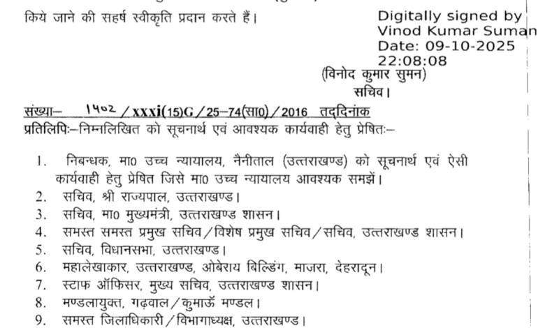 उत्तराखंड सरकार ने देर रात जारी किया आदेश