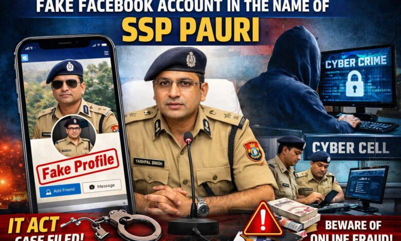 Rajkumar Dhiman, Dehradun: पौड़ी में साइबर अपराध का एक गंभीर मामला सामने आया है। किसी अज्ञात व्यक्ति ने वरिष्ठ पुलिस अधीक्षक (एसएसपी) पौड़ी के नाम से फेसबुक पर फर्जी अकाउंट बनाकर उनकी तस्वीर प्रोफाइल पर अपलोड कर दी। मामले की जानकारी मिलते ही पुलिस की साइबर सेल हरकत में आ गई है और अज्ञात आरोपी के खिलाफ मुकदमा दर्ज कर जांच शुरू कर दी गई है।