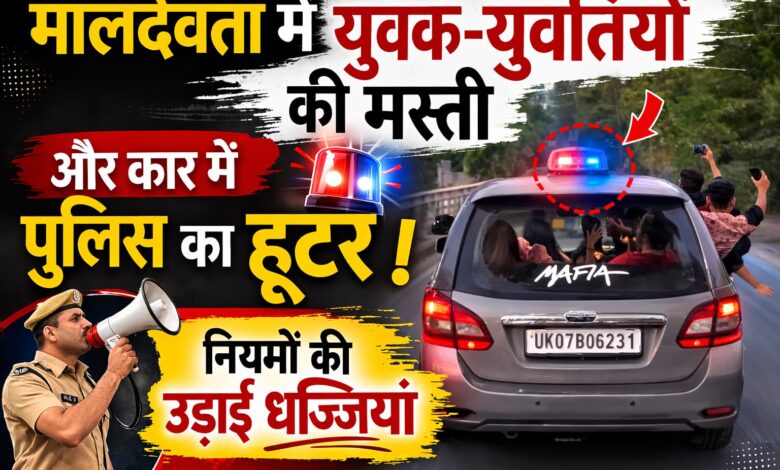 एक कार (UK07BQ6231) रविवार को मालदेवता की तरफ से आ रही थी, जिसमें कुछ युवक-युवतियां सवार थे। कार निरंतर पुलिस का हूटर बजाते हुए आगे बढ़ रही थी। इस दौरान कहीं पर भी कार को रोका नहीं गया।