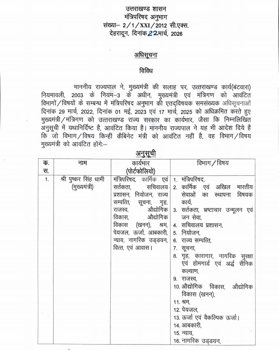 धन सिंह से वापस लिया स्वास्थ्य विभाग, सबोध को सौंपा, नए मंत्रियों को भी विभाग बांटे