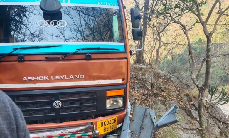 क्रश बैरियर ने थामे रखा डंपर, बची ड्राइवर और हेल्पर की जान