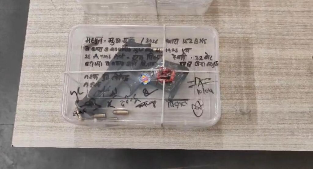 गिरफ्तारी के दौरान आरोपी के पास से .32 बोर की पिस्टल, 7 जिंदा कारतूस, स्प्रे पेंट कैन और एक मोबाइल फोन बरामद किया गया है। मोबाइल से कई अहम सुराग मिले हैं, जिन पर विभिन्न एजेंसियों के साथ मिलकर जांच जारी है।