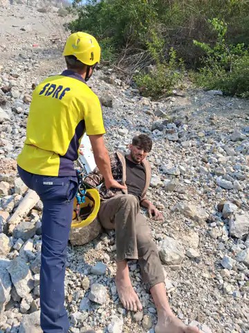 सूचना मिलते ही पुलिस और State Disaster Response Force (SDRF) की टीम मौके पर पहुंची। रेस्क्यू ऑपरेशन के दौरान जवानों ने जोखिम उठाते हुए खाई में उतरकर घायल युवक को रस्सियों और स्ट्रेचर की मदद से बाहर निकाला। इसके बाद उसे 108 एंबुलेंस सेवा से अस्पताल पहुंचाया गया, जहां उसका इलाज जारी है।